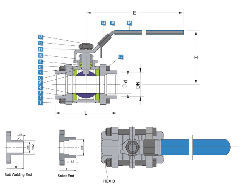 3PC内螺纹球阀M3 PN64 F104