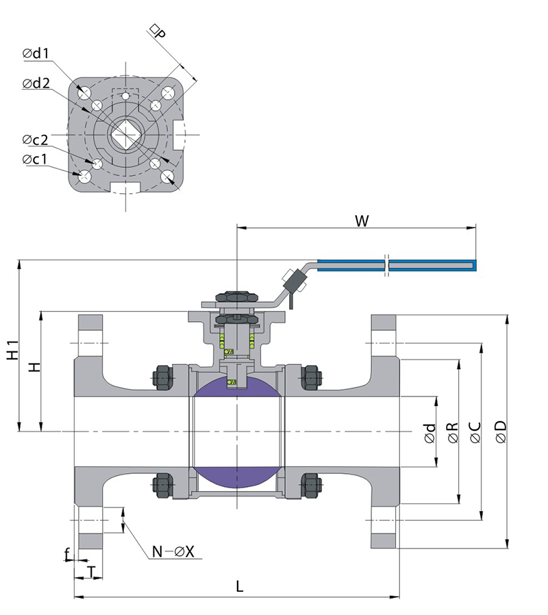 3PC美标高平台法兰球阀 WB-A03FH3