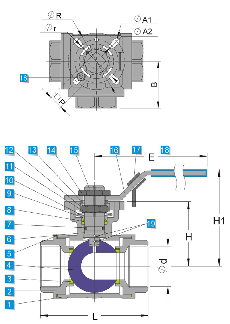 三通高平台内螺纹球阀 F111